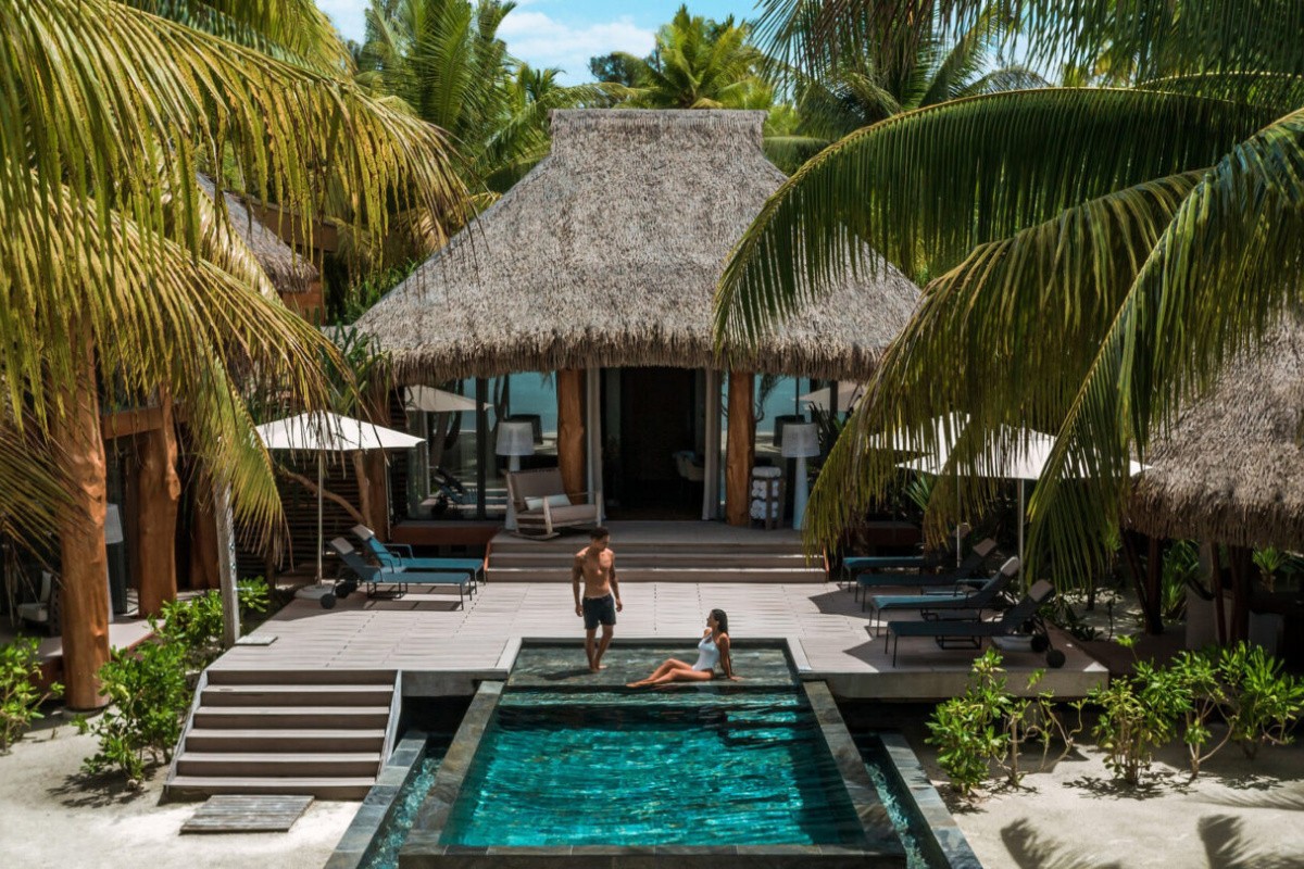 The transition from the modern world to The Brando’s rhythm is immediate and effortless. There are no lines, no lobbies. You are greeted by name and whisked away on an electric buggy along palm-shaded paths. The resort’s 35 villas are masterclasses in restrained luxury, designed with such a light touch that they seem to have grown from the soil. With roofs of woven pandanus and walls of local wood, they are private, palm-veiled domains. Each features a sprawling living area that opens completely to a private deck, plunge pool, and a stretch of powder-sand beach that bleeds into the lagoon. The aesthetic is ‘barefoot elegance’ perfected: cool terra cotta floors, deep-sofa comfort, and no doors to lock. The world outside is your living room.